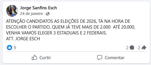 O articulador político Jorge Esch, que já presidiu partidos no Estado do Rio de Janeiro, iniciou o ano de 2026 com um discurso confiante sobre o futuro do partido Democracia Cristã. A promessa era clara: após ser nomeado terceiro vice-presidente, sob sua orientação a legenda alcançaria um novo patamar. Segundo ele, o partido elegeria dois deputados federais e três estaduais.